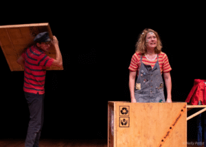 Een avontuurlijke voorstelling die op school wordt bezorgd