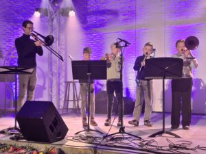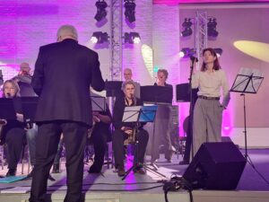 In de goed gevulde grote zaal van de Ikker in Burgum trakteerde Cultuurcentrum de Wâldsang het publiek afgelopen vrijdagavond op het jaarlijkse voorjaarsconcert. Optredens van kopersensemble de Wâldsang, een klassiek trio, Nataliia Gryshenko (zang) en Robert Harris (piano), kwintet “Wâldsax” en de bigband toonden de veelzijdigheid van het cultuurcentrum. Dit werd nog eens versterkt door de presentatie van een BasX schoolproject en de wereldpremiere van ‘In pracht paad troch 8K’ gecomponeerd door Jouke Douwe de Vries, de burgemeester van Achtkarspelen. Het was een topavond, prima aan elkaar gepraat door Michiel Veenstra. En niet onvermeld mag blijven de swingende pauzemuziek van de Omniband in de foyer. ‘Laat het voorjaar nu maar komen’ sloot bestuursvoorzitter Sjon Stellinga de avond af. De Wâldsang is er weer klaar voor!